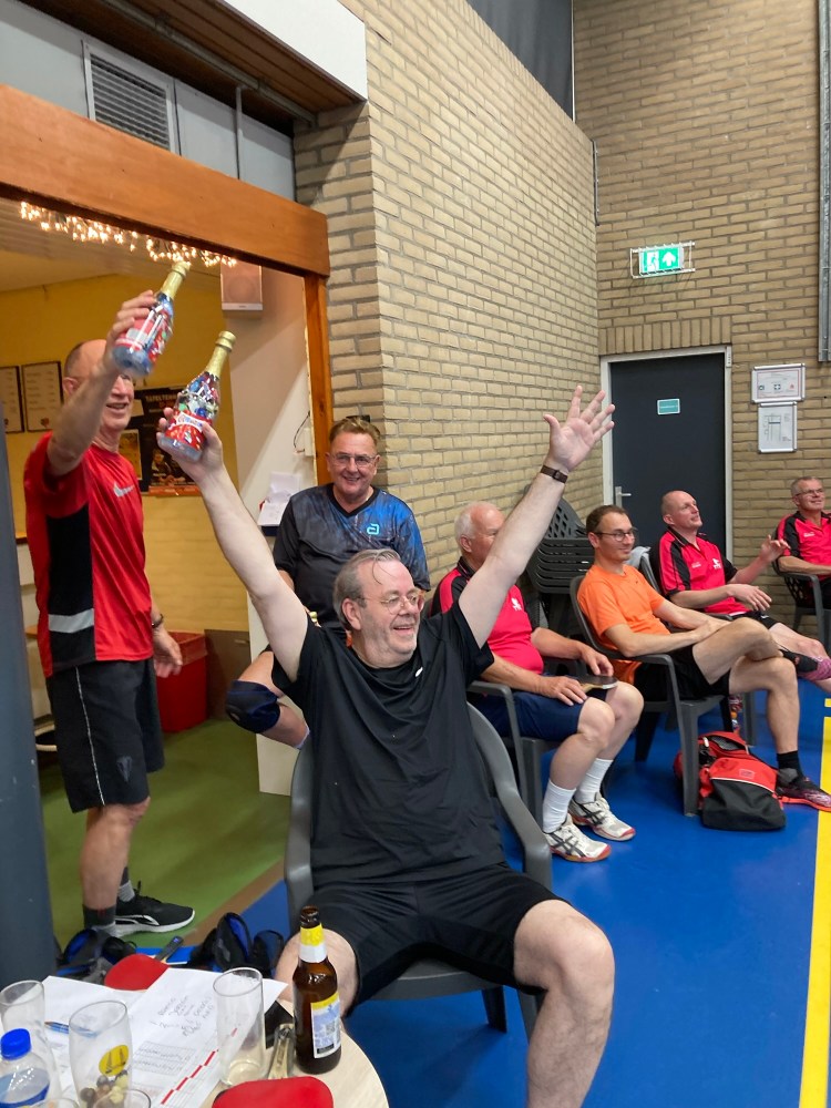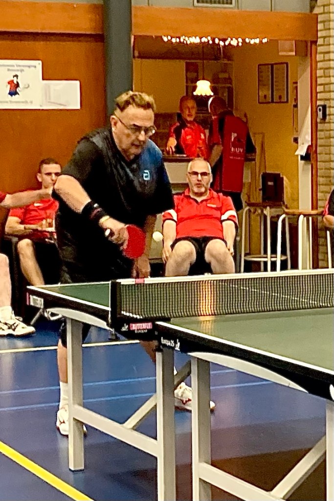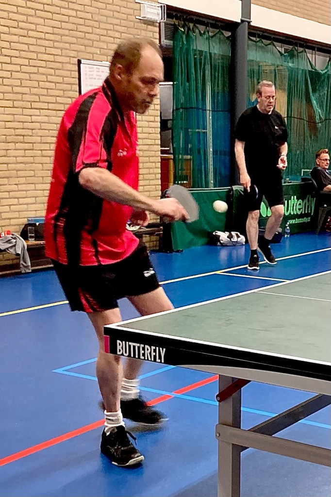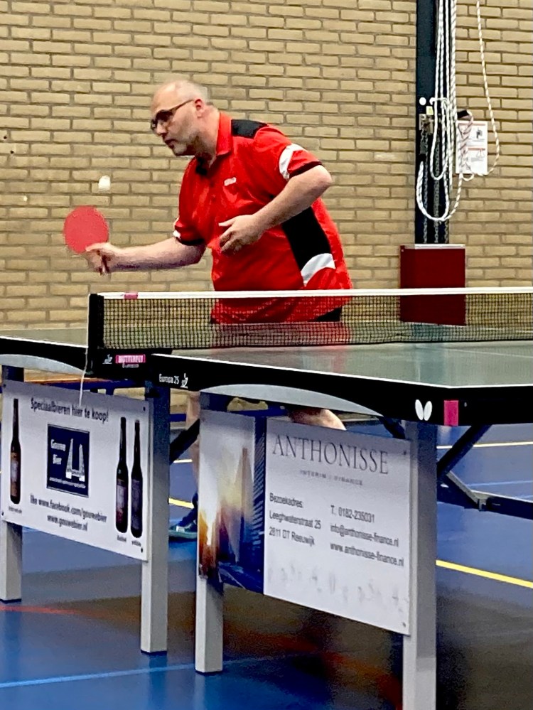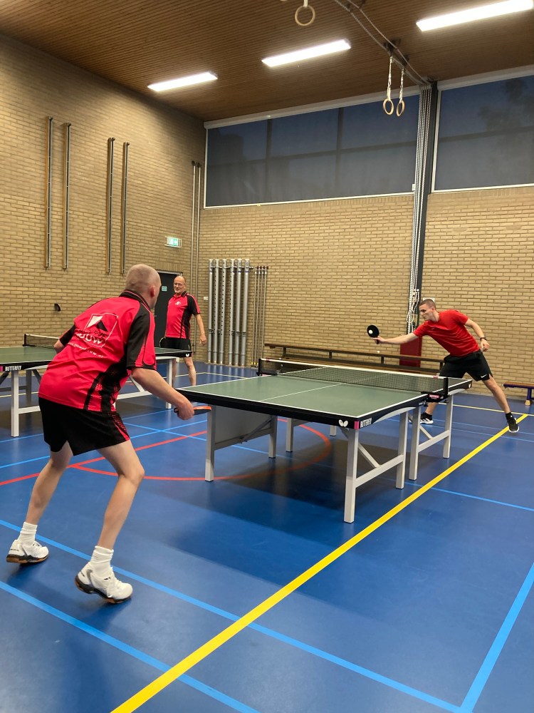 Ard, Martin en Gerard O. speelden in Haastrecht tegen TOP 3. Deze ontmoetingen leveren altijd interessante wedstrijden. Deze editie was daarop geen uitzondering. Hoewel het scorebord op enig moment 1-4 aangaf, kregen de Reeuwijkers het niet cadeau. Veel van de partijen gingen in vier of vijf games. De teams liggen qua niveau dan ook dicht bij elkaar. Toch liep Reeuwijk 2 uit naar 2-6, na benauwde zeges van Martin en Gerard. Met de winst op zak was bij Martin en Ard het beste er wel af. Beiden kwamen ze niet meer tot winst in hun laatste partijen. TOP 3 – Reeuwijk 2: 4-6. Reeuwijk 2 staat op een tweede plaats in West 2E met 30 punten uit 6 wedstrijden.
